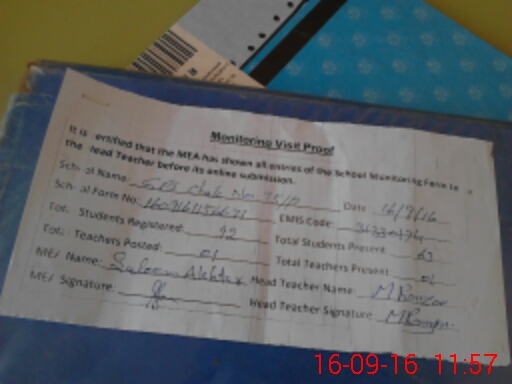 | Attendance Register | Head Teacher | MEA with School | Visit Proof |