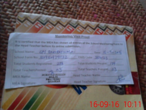 | EMIS Code: 38110123 | Name of School: GPS BAKHRAY WALI | |||