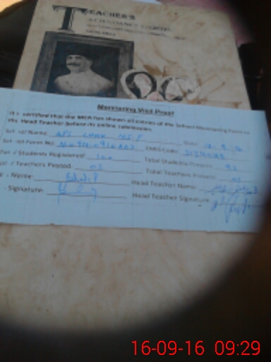 | Attendance Register | Head Teacher | MEA with School | Visit Proof |