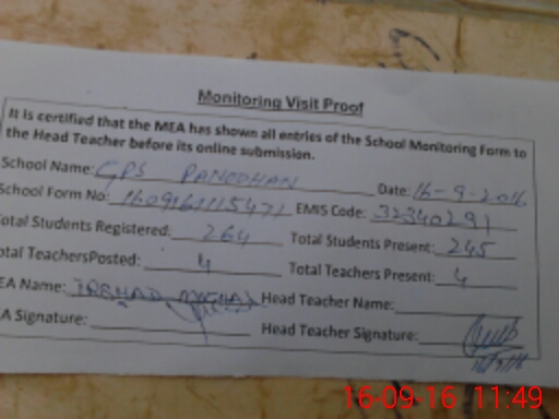 | Certified that this School was Inspected by the Undersigned MEA/DMO Today and the Information Stated Above is as Per Record. | |||||