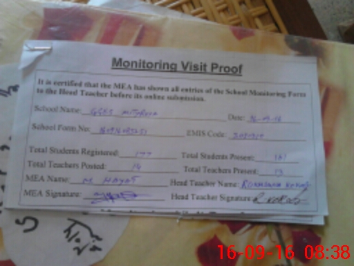 | Certified that this School was Inspected by the Undersigned MEA/DMO Today and the Information Stated Above is as Per Record. | |||||