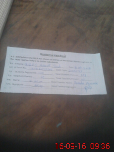 | Attendance Register | Head Teacher | MEA with School | Visit Proof |