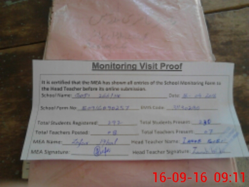 | Attendance Register | Head Teacher | MEA with School | Visit Proof |