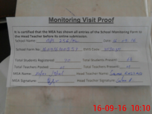 | EMIS Code: 31130311 | Name of School: GGPS CHAK NO 256/HR | |||