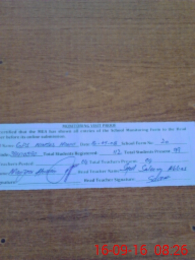 | Attendance Register | Head Teacher | MEA with School | Visit Proof |