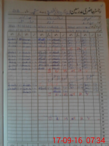 | CNIC | Full Name | Designation | R/C | Absence During Last Calender Month |