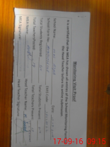 | Certified that this School was Inspected by the Undersigned MEA/DMO Today and the Information Stated Above is as Per Record. | |||||