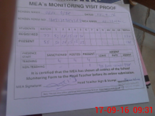 | Attendance Register | Head Teacher | MEA with School | Visit Proof |