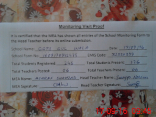 | EMIS Code: 32330399 | Name of School: GGPS GULL WALA | |||