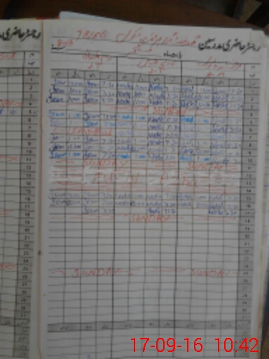 | CNIC | Full Name | Designation | R/C | Absence During Last Calender Month |