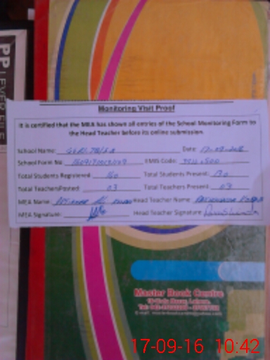 | Attendance Register | Head Teacher | MEA with School | Visit Proof |