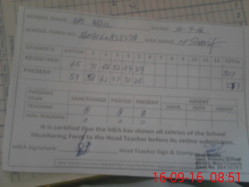 | Name: GH**** ME**** Designation: (School Headmaster's/Headmistress's) PTC/JV Phone/Cell Number: 03**** |