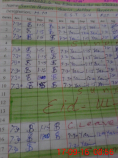 | CNIC | Full Name | Designation | R/C | Absence During Last Calender Month |