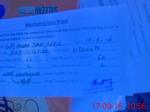 | EMIS Code: 31320274 | Name of School: GPS MOADIB THAIR FAZIL | |||