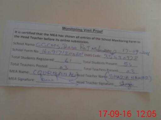 | EMIS Code: 35430978 | Name of School: GGCMS DERA RAJ MUHMMAD | |||
