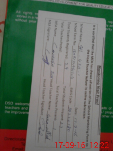 | Certified that this School was Inspected by the Undersigned MEA/DMO Today and the Information Stated Above is as Per Record. | |||||