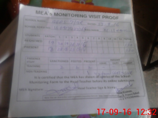 | Attendance Register | Head Teacher | MEA with School | Visit Proof |