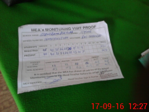 | Attendance Register | Head Teacher | MEA with School | Visit Proof |