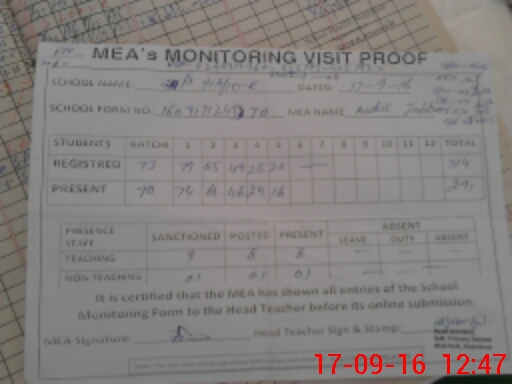 | Attendance Register | Head Teacher | MEA with School | Visit Proof |