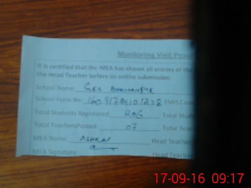| Certified that this School was Inspected by the Undersigned MEA/DMO Today and the Information Stated Above is as Per Record. | |||||