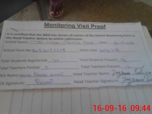 | Attendance Register | Head Teacher | MEA with School | Visit Proof |