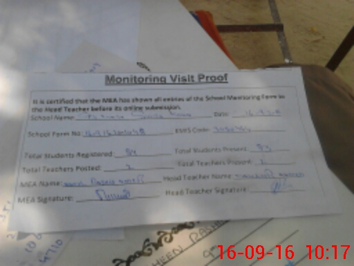 | Attendance Register | Head Teacher | MEA with School | Visit Proof |