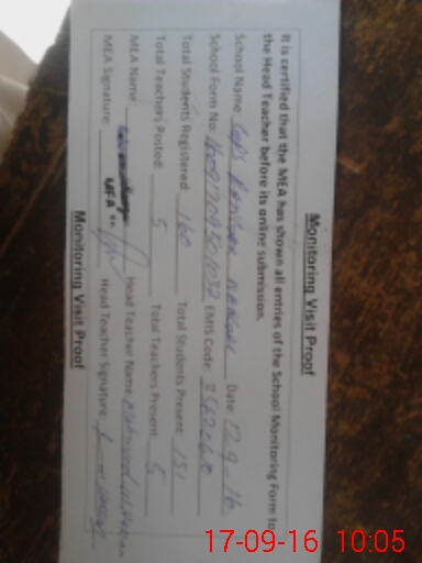 | Certified that this School was Inspected by the Undersigned MEA/DMO Today and the Information Stated Above is as Per Record. | |||||