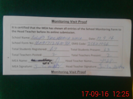 | Attendance Register | Head Teacher | MEA with School | Visit Proof |