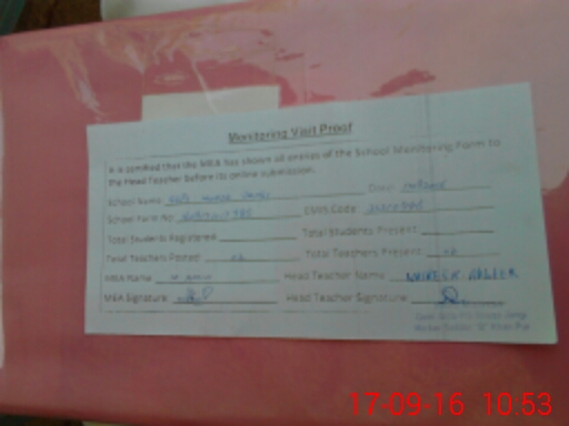 | Attendance Register | Head Teacher | MEA with School | Visit Proof |