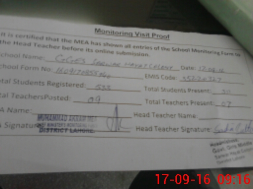 | Certified that this School was Inspected by the Undersigned MEA/DMO Today and the Information Stated Above is as Per Record. | |||||