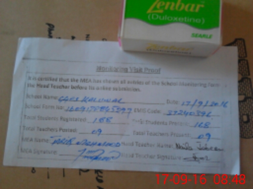 | Attendance Register | Head Teacher | MEA with School | Visit Proof |