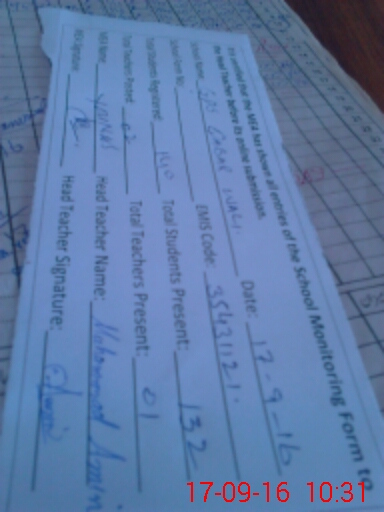 | Attendance Register | Head Teacher | MEA with School | Visit Proof |