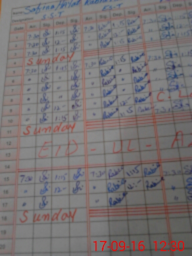 | CNIC | Full Name | Designation | R/C | Absence During Last Calender Month |