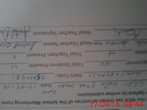 | Monitoring Date: 17-09-2016 | Start Time: 17-09-2016 08:13 AM | End Time: 17-09-2016 08:50 AM | Name of MEA: Ej**** Ah**** Kh**** (R**** | |