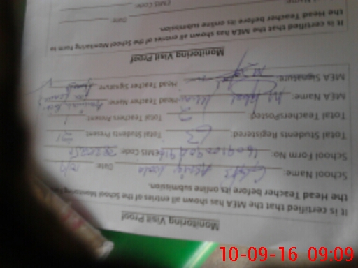 | Attendance Register | Head Teacher | MEA with School | Visit Proof |