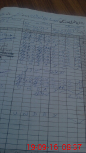 | CNIC | Full Name | Designation | R/C | Absence During Last Calender Month |