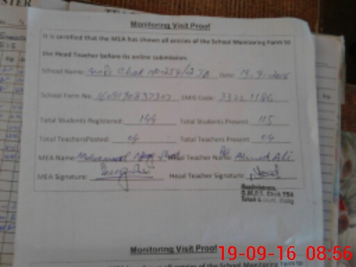 | Certified that this School was Inspected by the Undersigned MEA/DMO Today and the Information Stated Above is as Per Record. | |||||