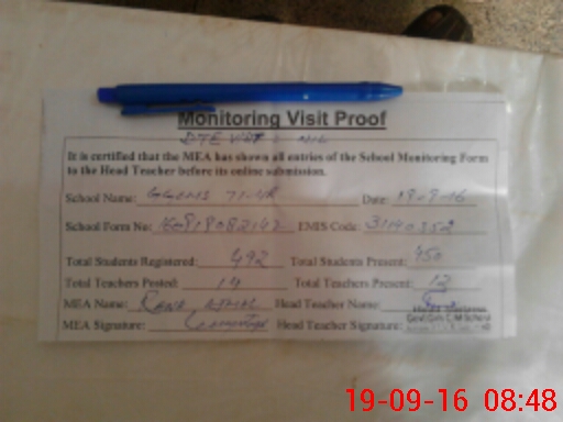 | Attendance Register | Head Teacher | MEA with School | Visit Proof |