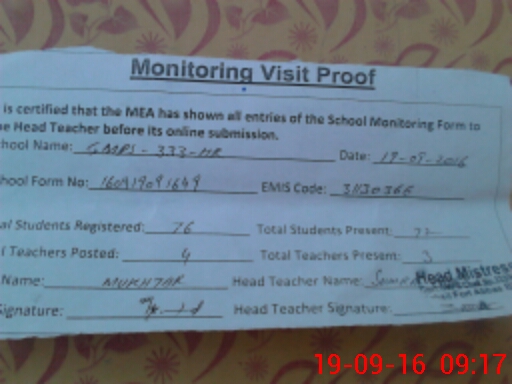 | EMIS Code: 31130366 | Name of School: GMPS CHAK NO 333 HR | |||