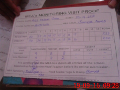 | EMIS Code: 36410060 | Name of School: GES KARAM SHAH, SARAI SIDHU | |||