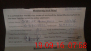 | Certified that this School was Inspected by the Undersigned MEA/DMO Today and the Information Stated Above is as Per Record. | |||||