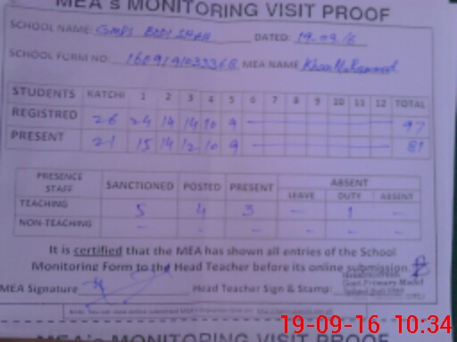 | Certified that this School was Inspected by the Undersigned MEA/DMO Today and the Information Stated Above is as Per Record. | |||||
