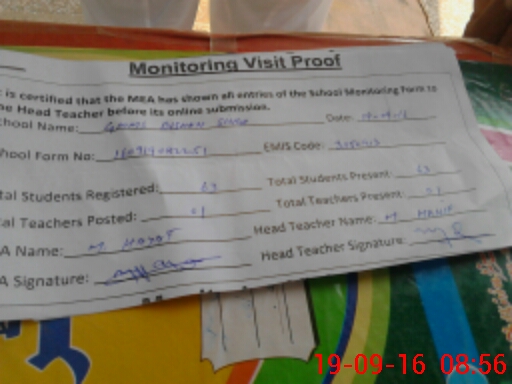 | Certified that this School was Inspected by the Undersigned MEA/DMO Today and the Information Stated Above is as Per Record. | |||||