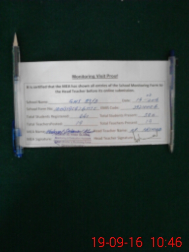 | Certified that this School was Inspected by the Undersigned MEA/DMO Today and the Information Stated Above is as Per Record. | |||||