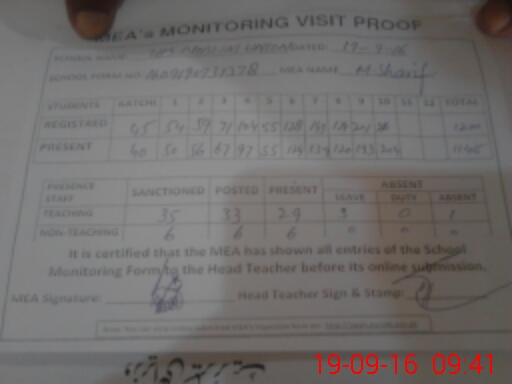 | Certified that this School was Inspected by the Undersigned MEA/DMO Today and the Information Stated Above is as Per Record. | |||||
