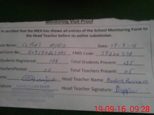 | Certified that this School was Inspected by the Undersigned MEA/DMO Today and the Information Stated Above is as Per Record. | |||||
