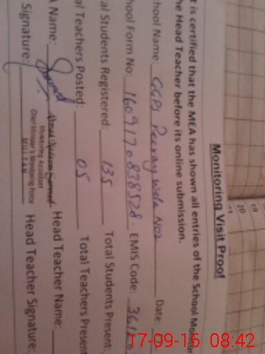 | Attendance Register | Head Teacher | MEA with School | Visit Proof |