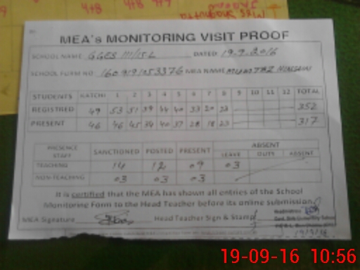 | Attendance Register | Head Teacher | MEA with School | Visit Proof |