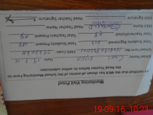 | Certified that this School was Inspected by the Undersigned MEA/DMO Today and the Information Stated Above is as Per Record. | |||||