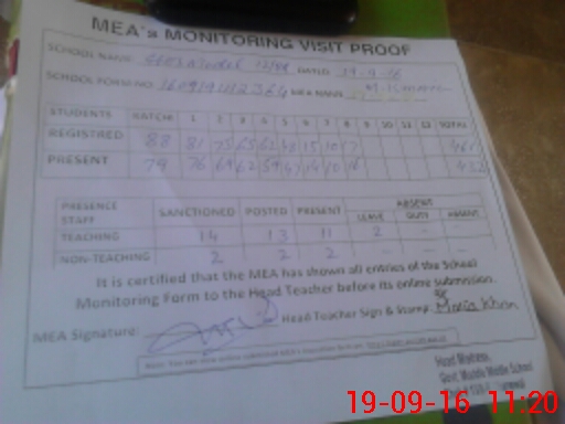 | Attendance Register | Head Teacher | MEA with School | Visit Proof |